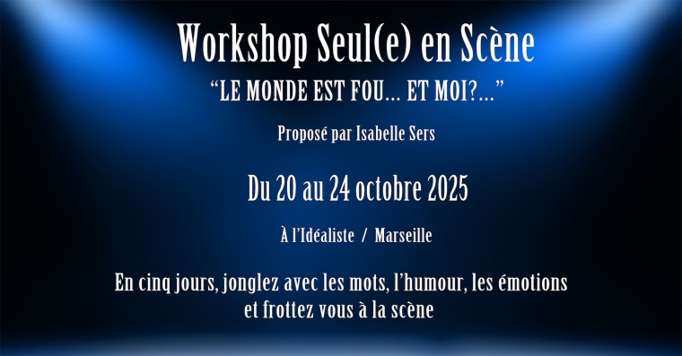 J’ai le plaisir de vous proposer un nouveau workshop Seul(e) en Scène du 20 au 24 octobre 2025 à Marseille.